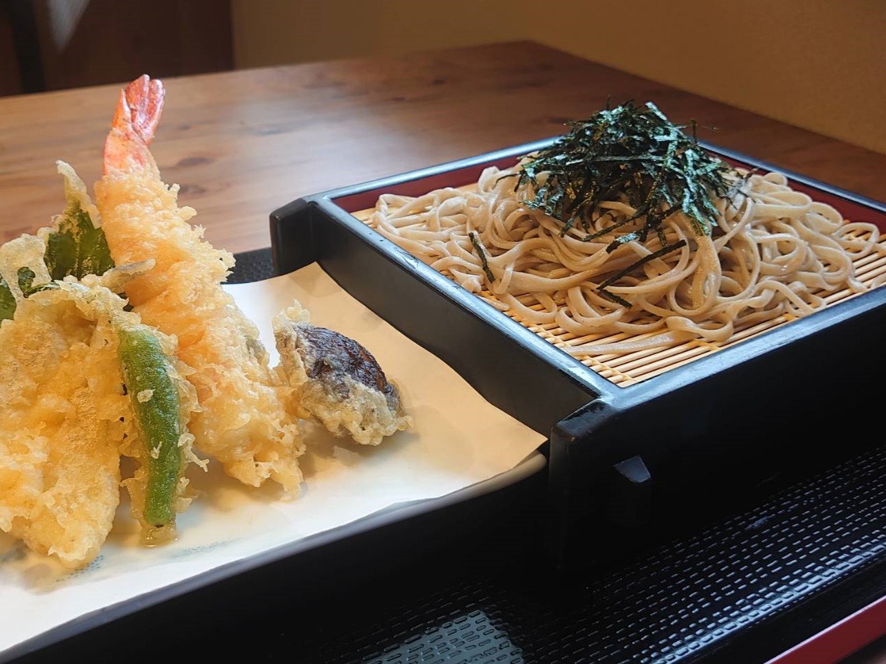 人気メニューの「天ざるそば」と「おざら」はボリューム満点です。